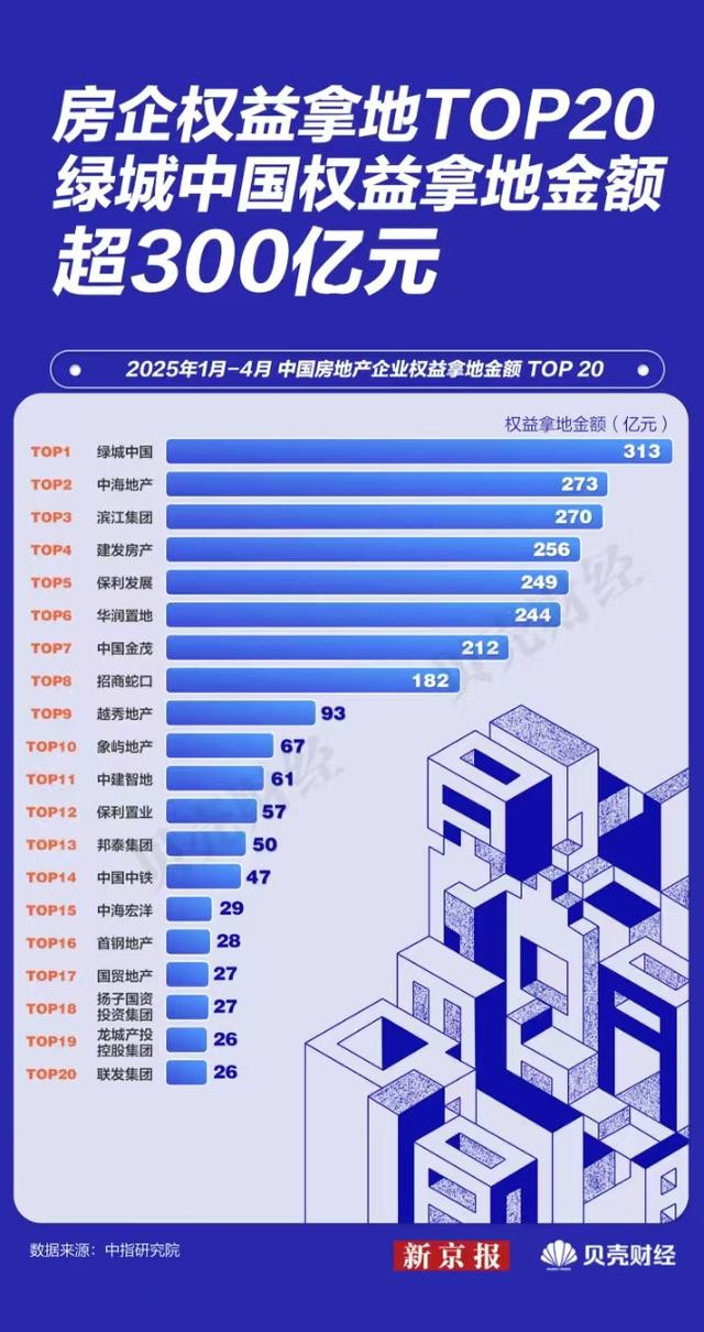 2025年以来,核心城市在政策优化、优质供给增加及土地市场回暖的带动下,市场情绪有所修复,但全国市场仍尚未完全企稳。受核心城市土地市场成交火热的影响,2025年1-4月,TOP100企业拿地总额3608亿元,同比增长26.6%,增幅较上月减少4.0个百分点。